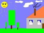 харесва ми контрастът м/у дърветата; слънчицето и коминът:D