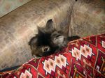 Търчи си животното из стаята, а аз бягам след него, за да го хвана и да го прибера в клетката. В един момент скача на диванчето, покатерва се върху възглавницата и... задника му натежава и пропада. Заклещи се само на дебелите си бузи.