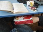 Левичар съм...и единственото мое там е химикала, тетрадката и телефона :Р (айде и краката...)