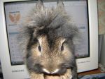 Доста пернат гривест заек. Абсолютното неориентирано същество и пълен непукист. Има силна непоносимост към килими и плюшени играчки. |
